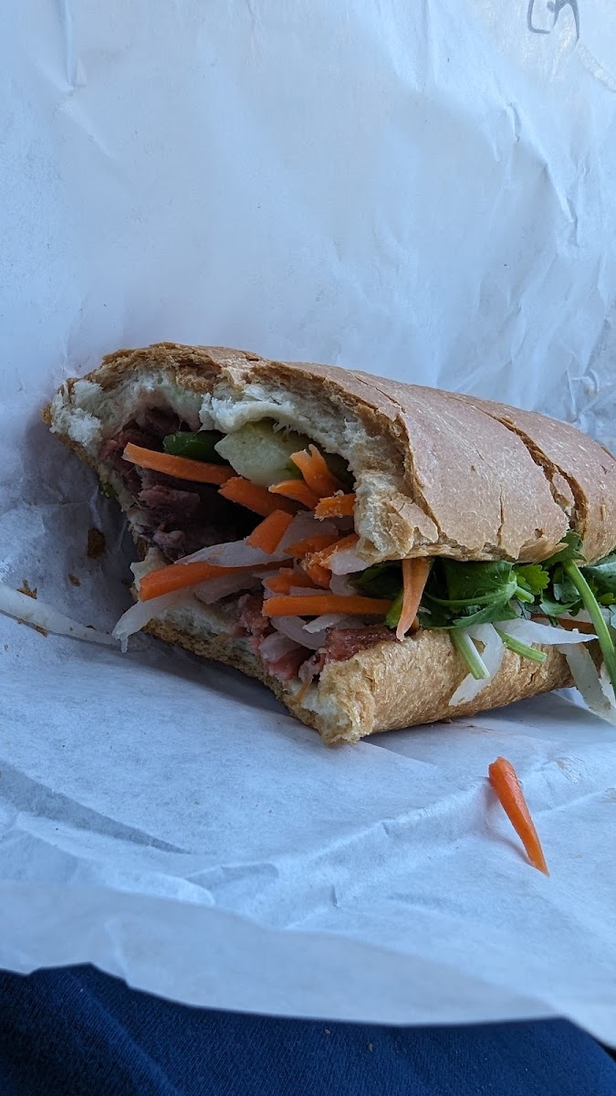 Customers rave about the fresh ingredients, quality meats, and friendly service provided by the sweet couple who run the shop. The sandwiches are generously filled with meat and vegetables, creating the perfect balance of flavors. The banh mi is served on a fresh baguette, making each bite a delightful experience.